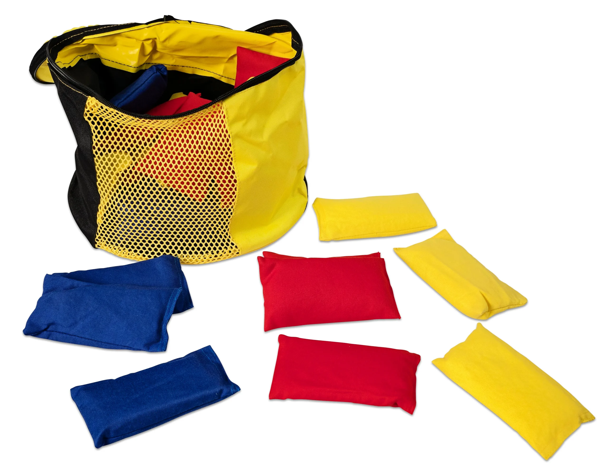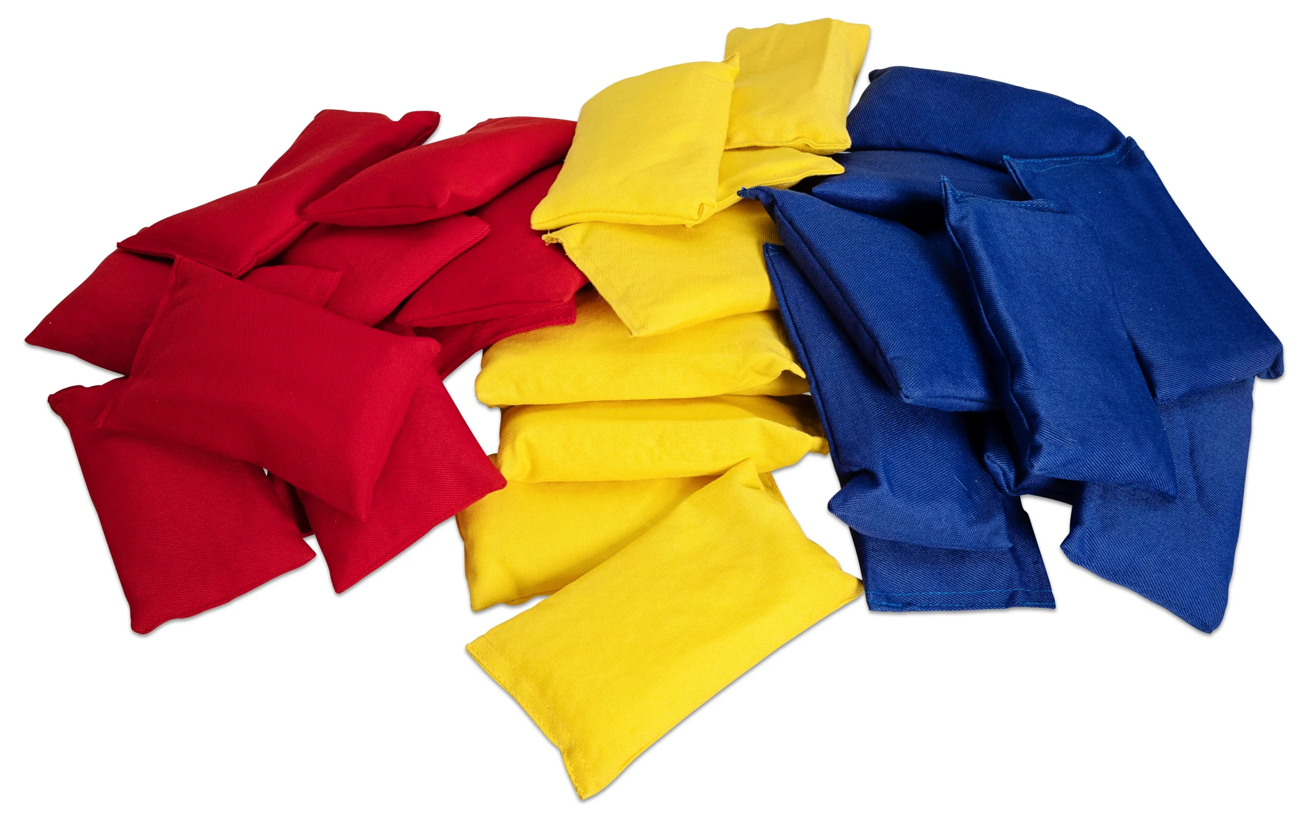 Dette komplette sæt indeholder 30 farverige ærteposer i bomuld (10 røde, 10 blå og 10 gule – hver 14 x 8 cm) samt en praktisk rund nylonpose til opbevaring. Perfekt til skole, SFO, institution eller hjemmetræning. Ærteposerne er bløde og nemme at gribe, balancere og kaste med.