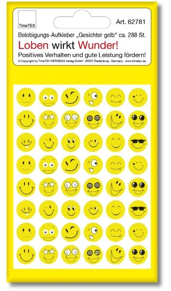 Med Belønnings-Klistermærker “Gule Smileys”, kan du let og effektivt motivere og anerkende hvert barns unikke bidrag og succeser.