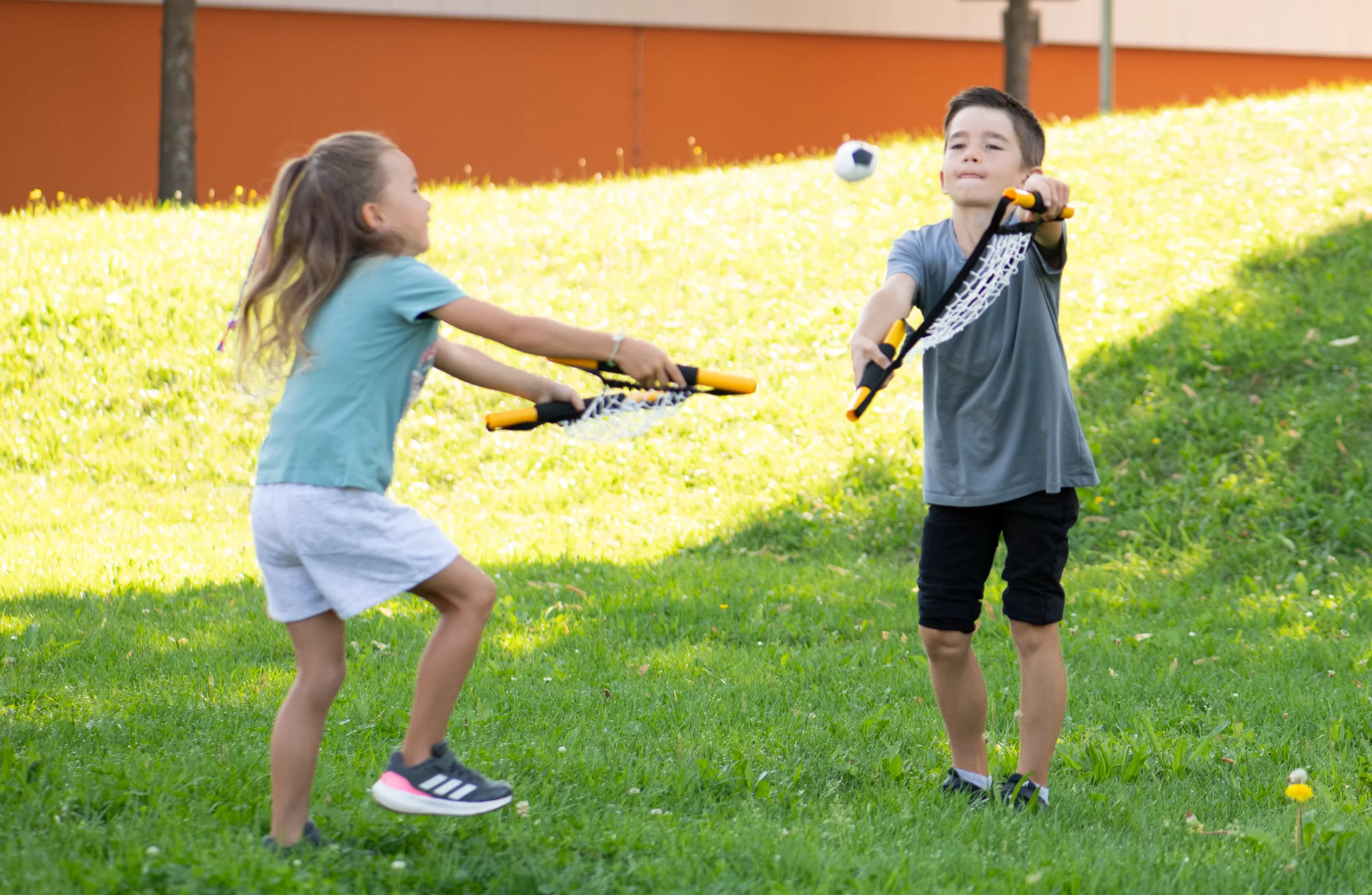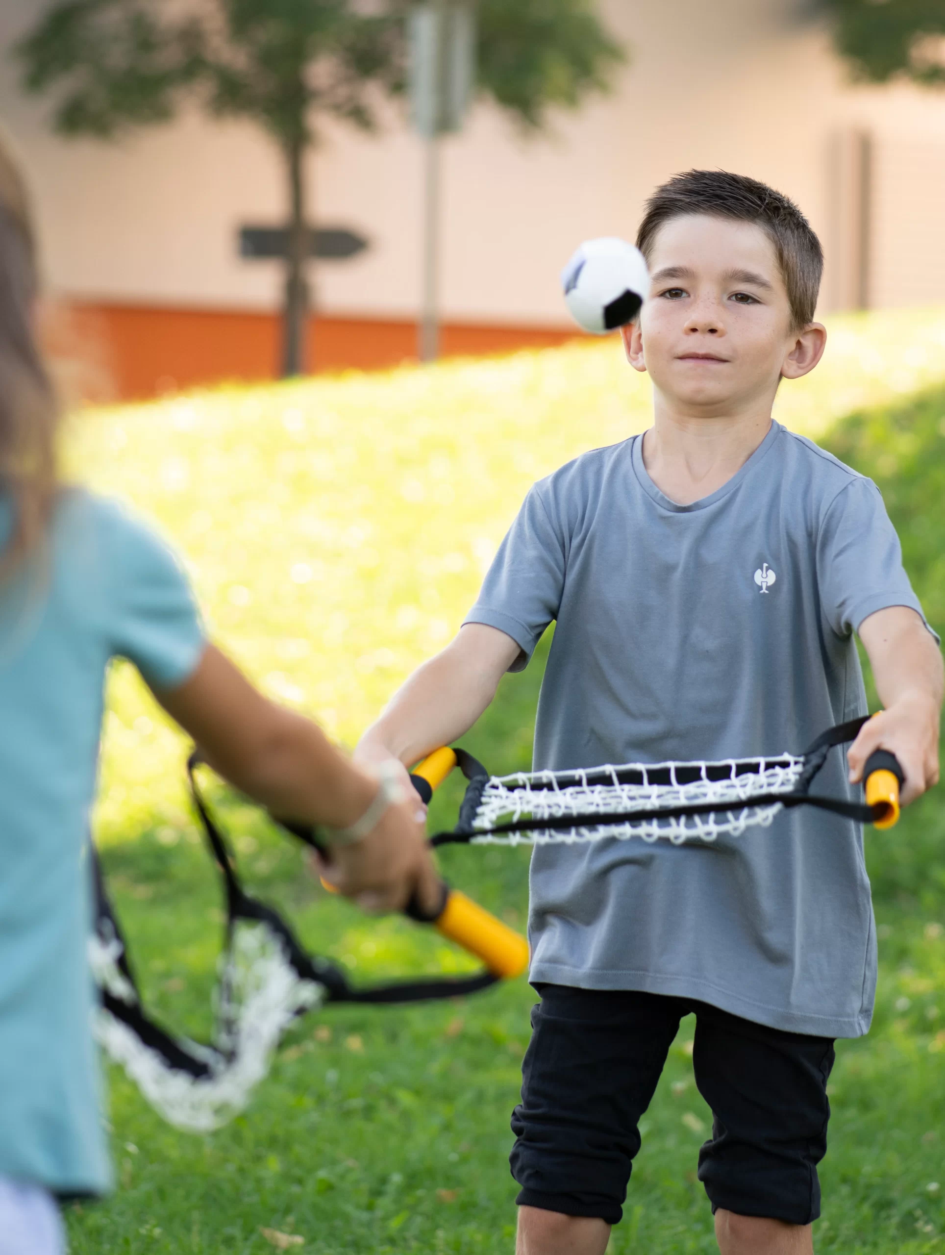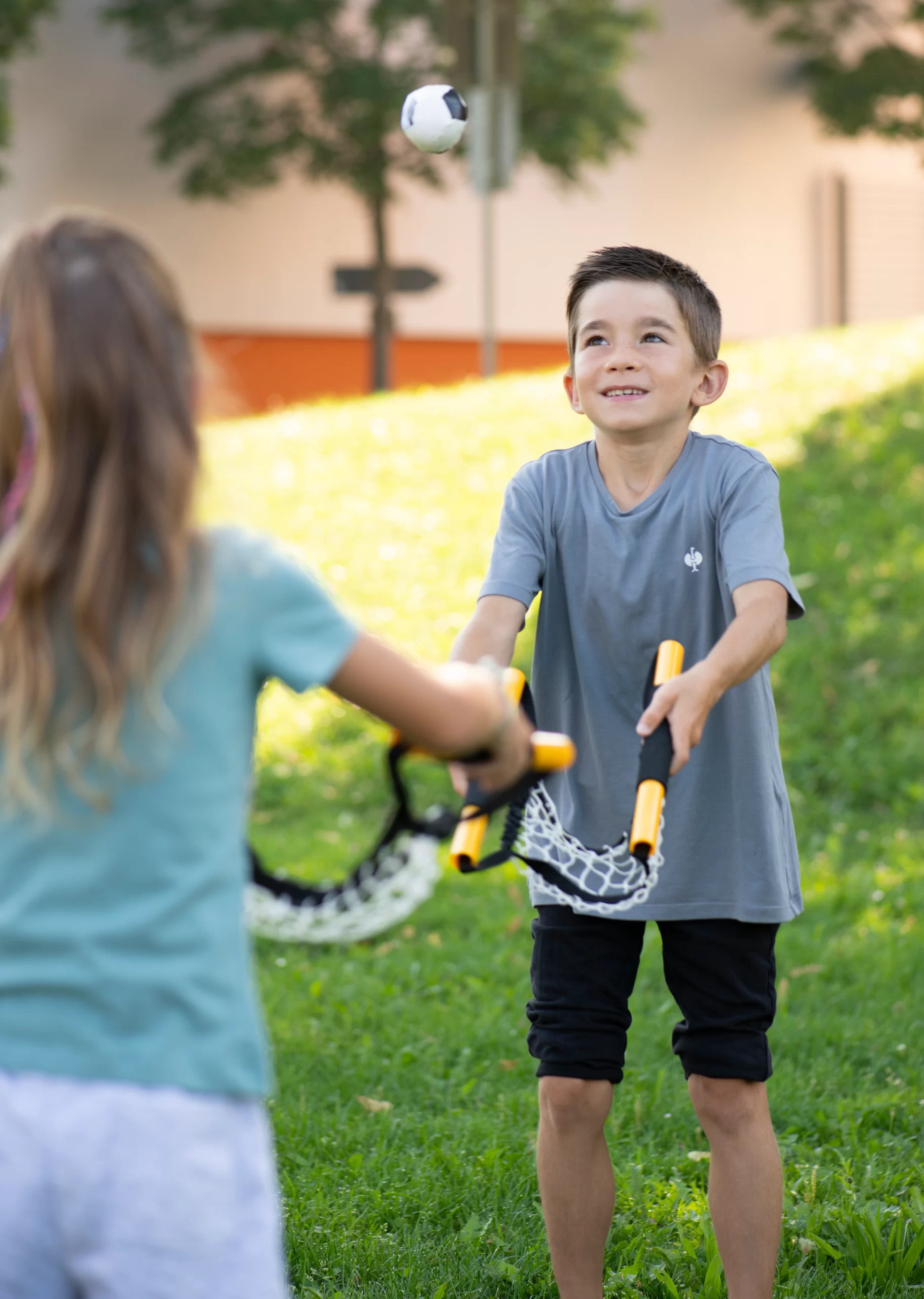Dette sæt er også ideelt til forhindringsbaner, hvor bolden skal balanceres på det spændte net. Du kan endda spille med andre typer bolde eller med ærteposer for variation.