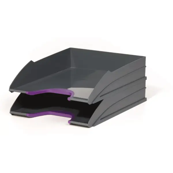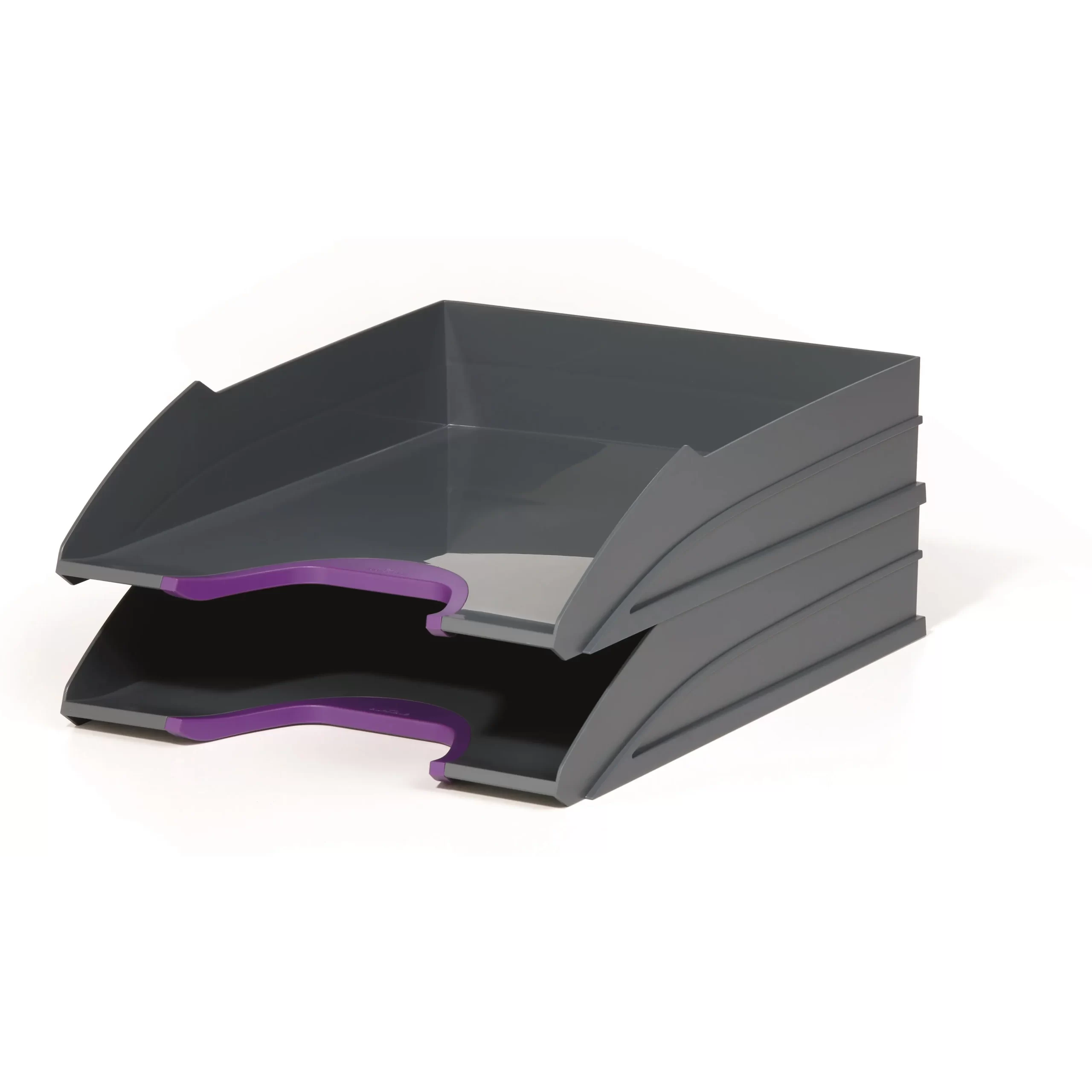 Varicolor Brevbakken fra Durable er den perfekte måde at bringe orden og stil til dit kontor. Med sin karakteristiske lilla farvelinje og robuste konstruktion er denne brevbakke en ideel ledsager til din arbejdsdag.