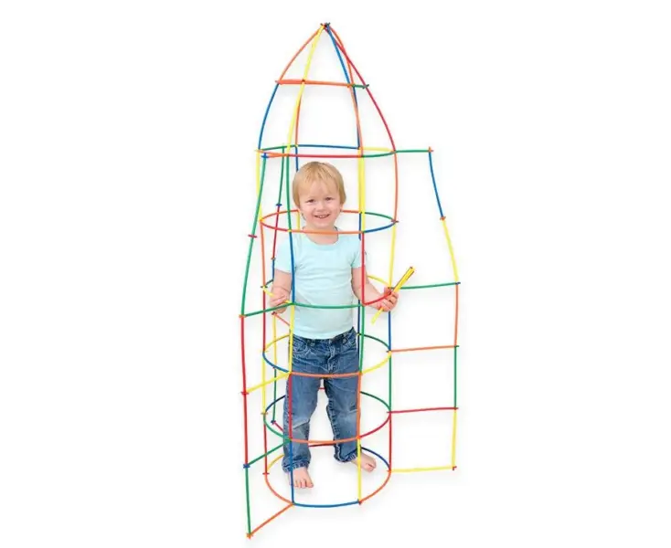 Med dette byggesæt kan børnene træne deres finmotorik og rumlige forståelse, mens de lærer om geometriske figurer og deres egenskaber. Stængerne kan også nemt klippes over med en saks, hvilket giver endnu flere muligheder for at skabe spændende figurer og konstruktioner.