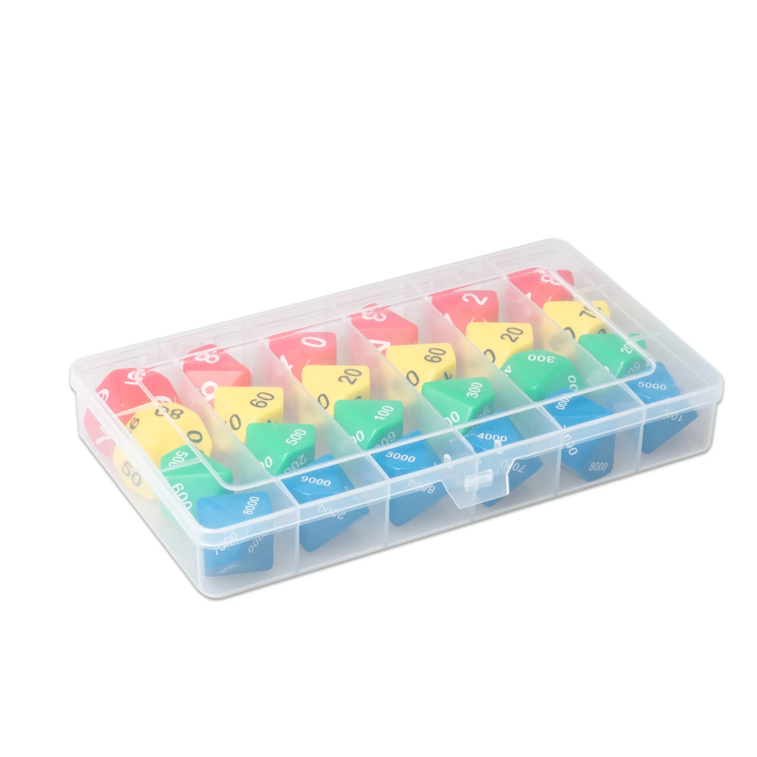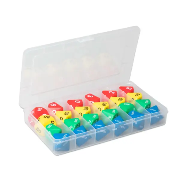 Hver terning i Decimal Terningesæt er omhyggeligt designet til at stimulere både visuel og taktil læring. Sættet kommer i en praktisk opbevaringsboks, hvilket gør det let at holde orden og bringe sættet med overalt – fra klasselokalet til hjemmet.