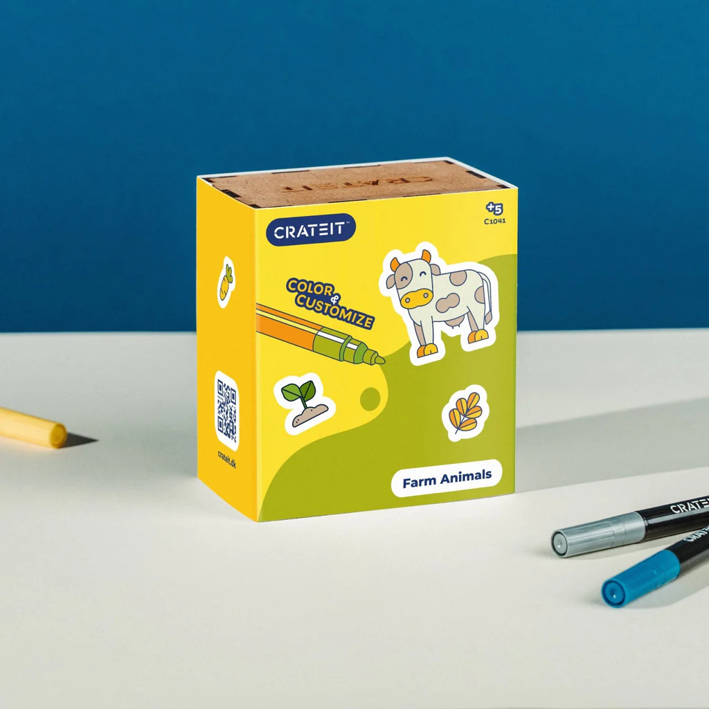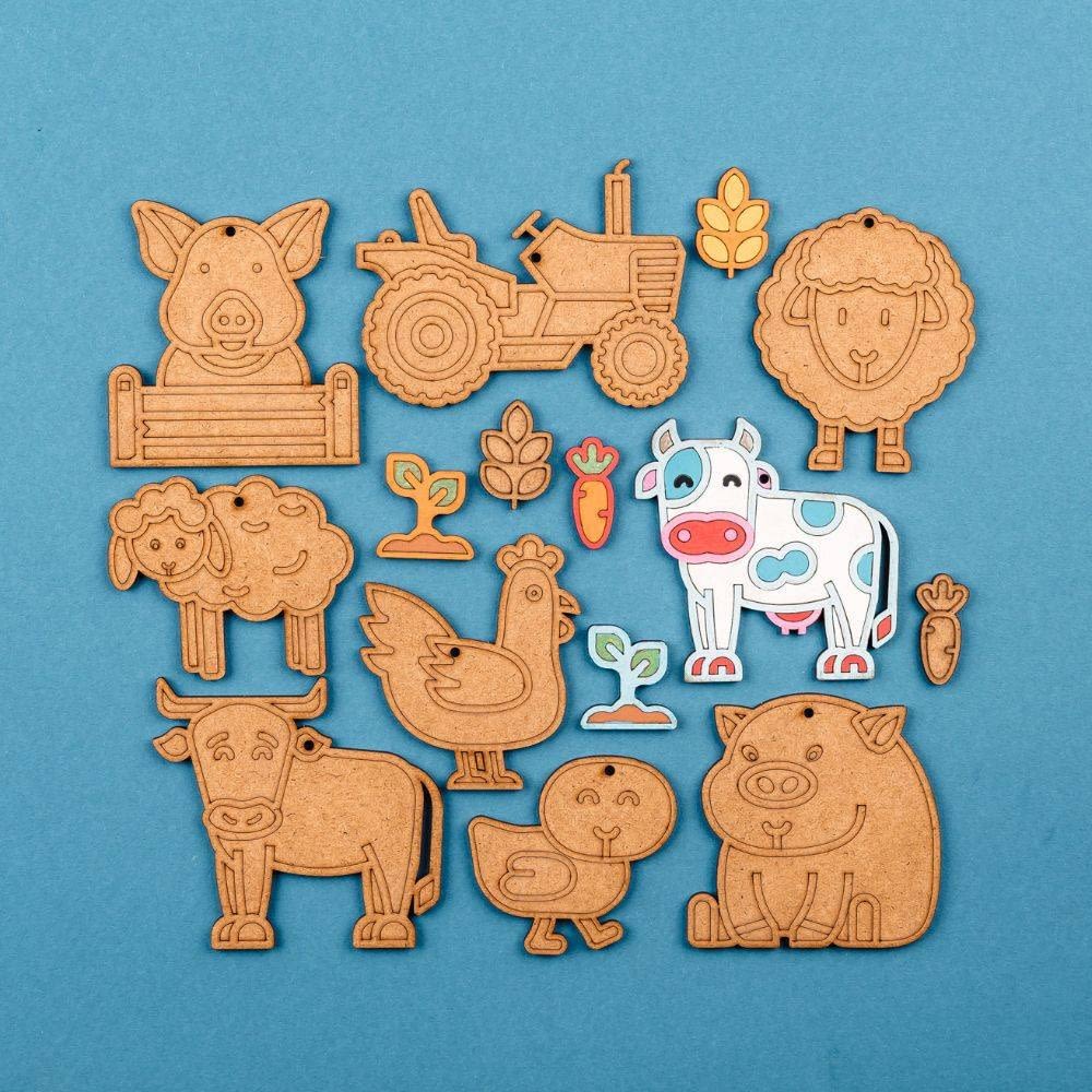 Farvelæg og leg med træfigurene fra ‘Bondegården’