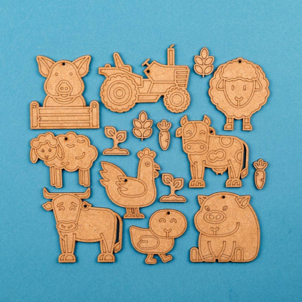 Her får du 15 figurer du kan supplere med dit Bondegård Trælegetøj, Bondehuset eller Trælegetøj Bondegård, Livet i Stalden. Du kan også købe dyrene seperat og bruge dyrene til et ordinært undervisningsforløb i natur og teknologi eller dansk som skrive- og fortælleøvelse.