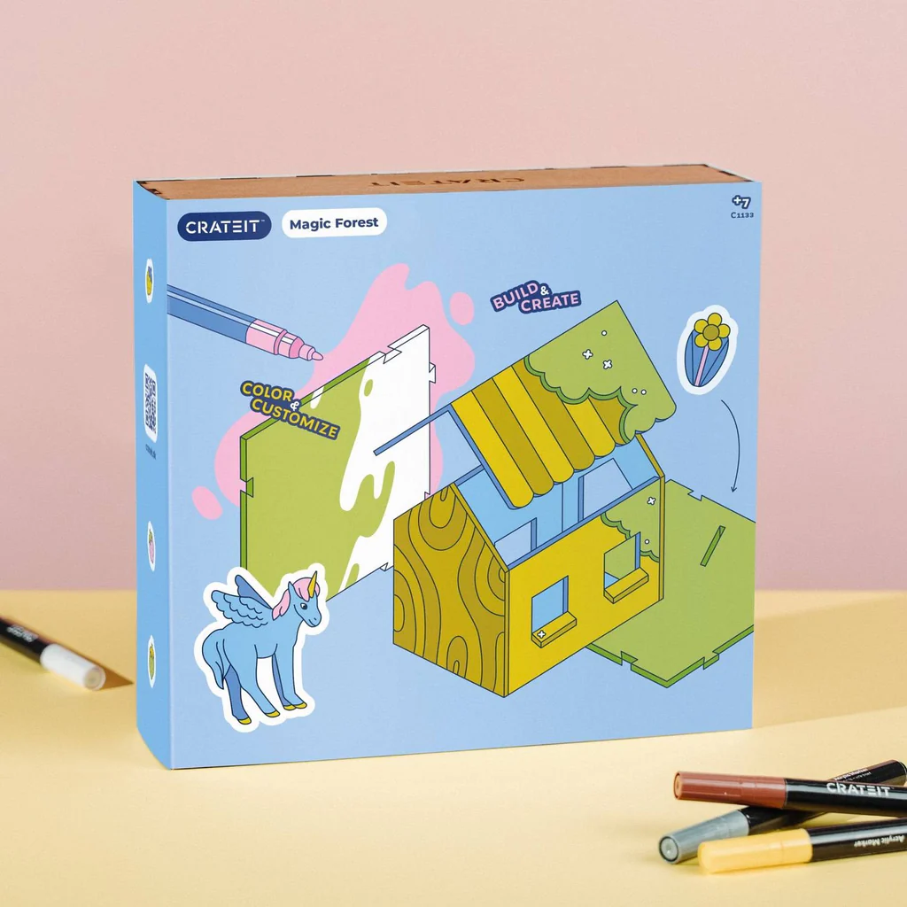 I Den Magiske Skov lever enhjørningen Juni med sine 3 bedste venner. Dybt inde i skoven, flyver de rundt blandt fortryllende træer. De fire enhjørninger elsker vilde jordbær, som de bruger til at brygge deres magiske eliksir. Bliv en del af eventyret ved at farvelægge og samle vennernes hemmelige hjem.