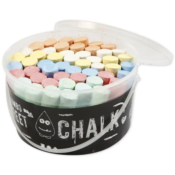 Hvert kridt har en diameter på 2,4 cm og en længde på 10 cm, hvilket gør dem nemme at holde for både små og store hænder. Med det praktiske opbevaringsspand med låg, er det let at tage kridtene med overalt og opbevare dem sikkert, når legen er slut.
