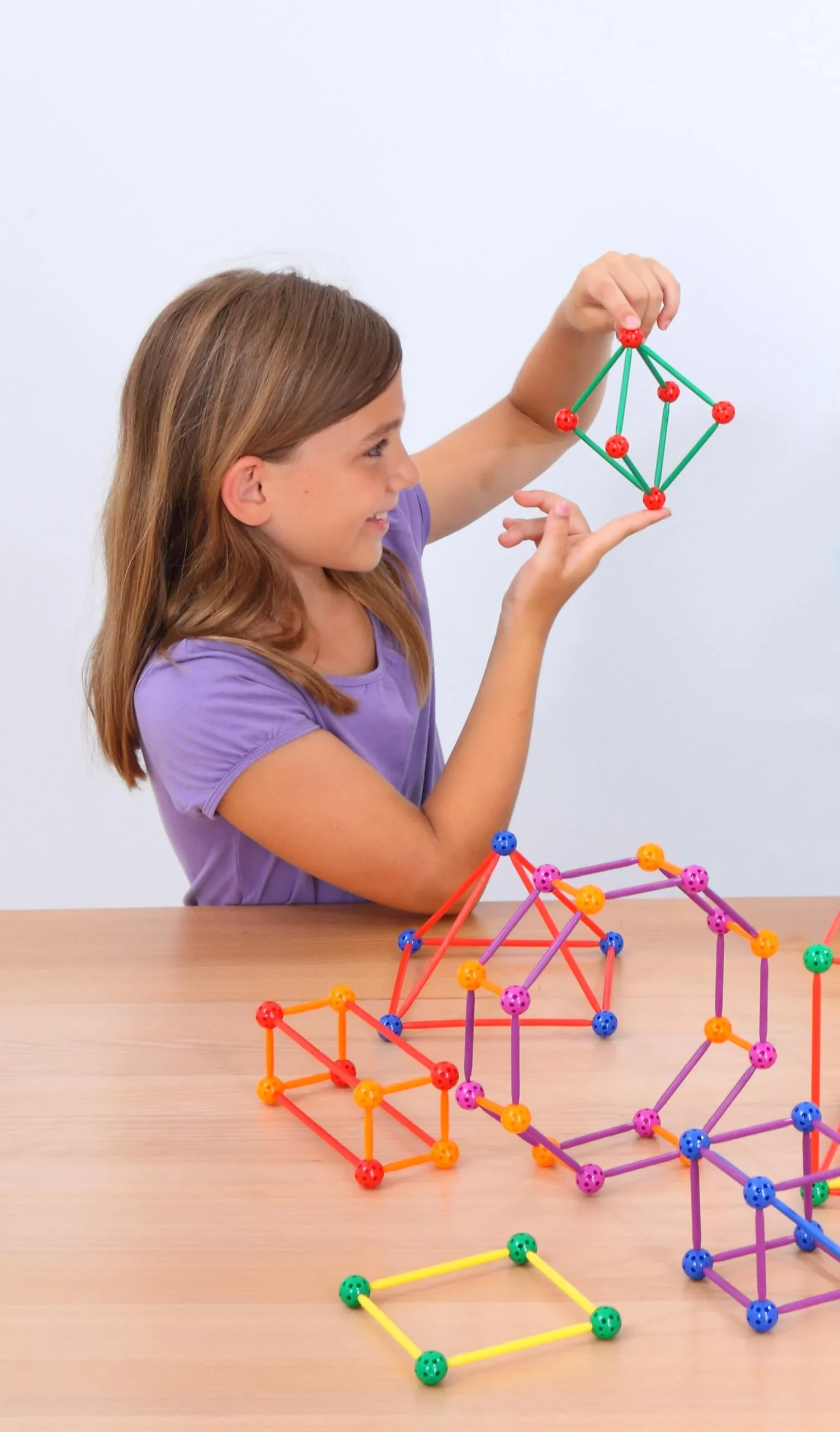 Eleverne kan bygge geometriske figurer som terninger, pyramider og prismer. De kan også lave egne kreative konstruktioner. Læring bliver sjovere, når de bruger fantasi og skaber unikke ting. Stængerne fungerer som kanter og kuglerne som hjørner, hvilket gør det nemt at visualisere begreberne.