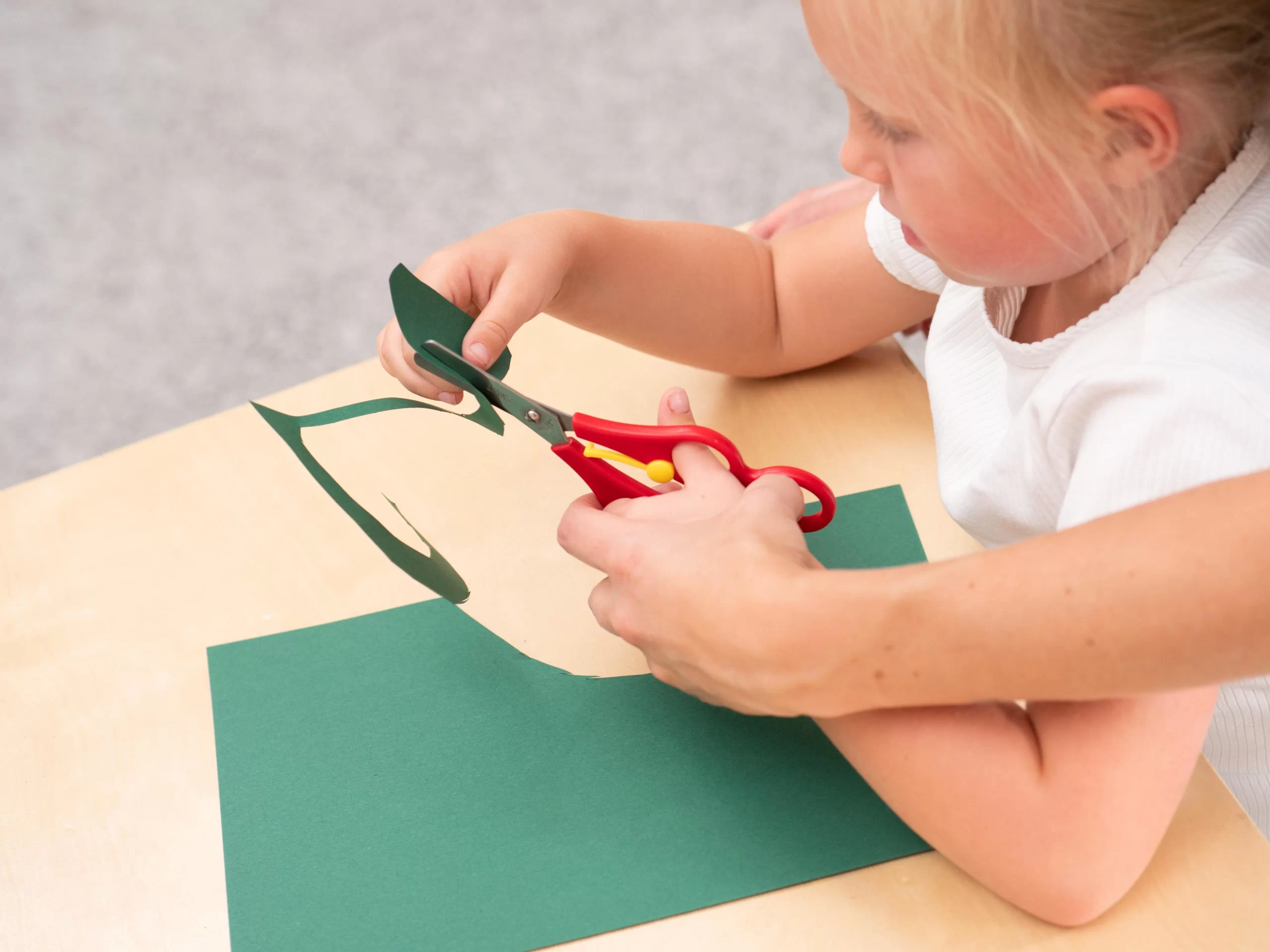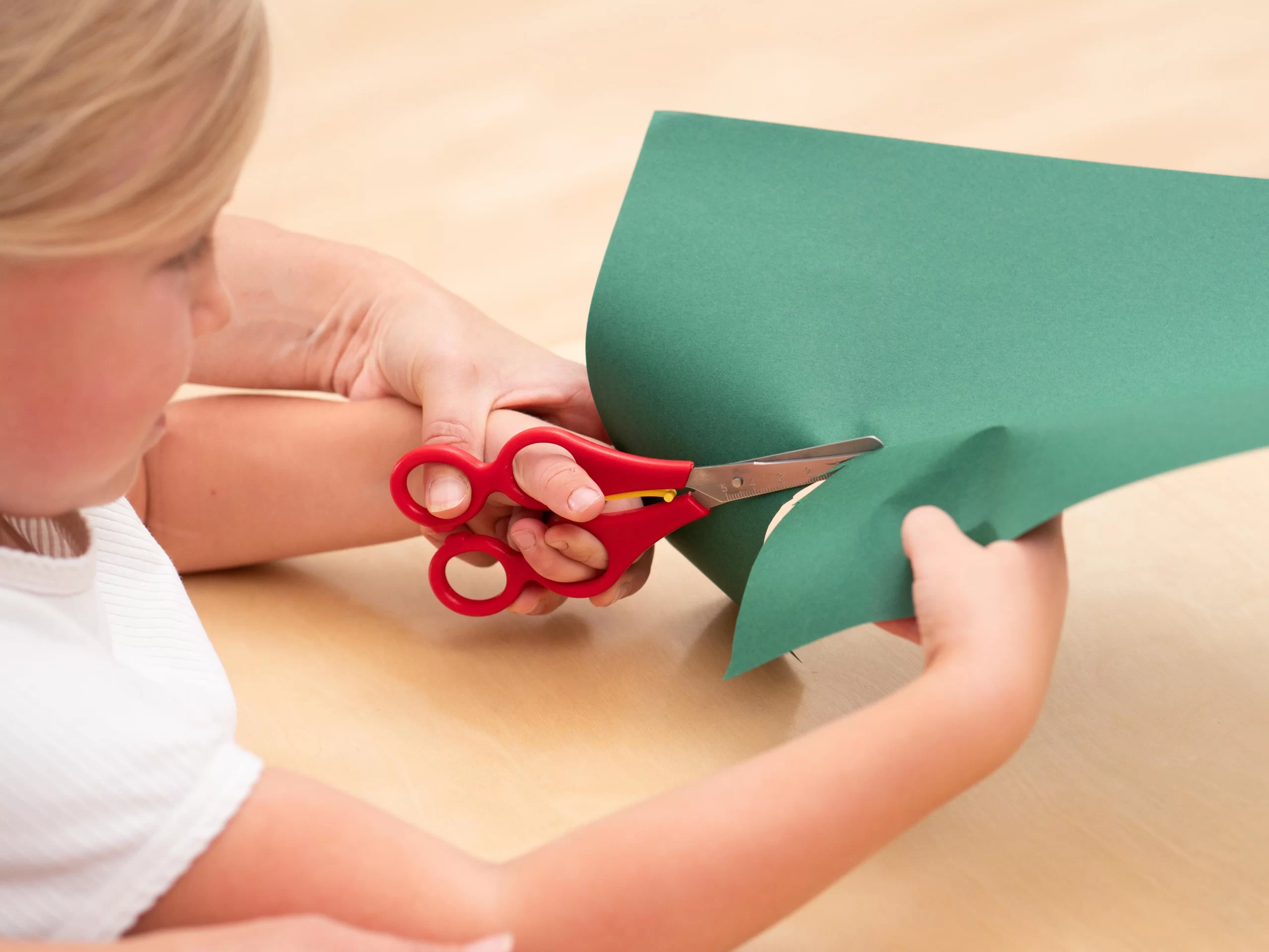 Med Hjælpesaksen kan børn lære at klippe med en voksens hjælp. Voksne kan ledsage barnets hånd, hvilket gør det lettere at lære at åbne og lukke saksen korrekt samt at bevæge håndleddet rigtigt for at opnå en præcis klipning. Denne proces hjælper børn med at opbygge selvtillid og færdigheder, så de senere kan bruge saksen uden hjælp.