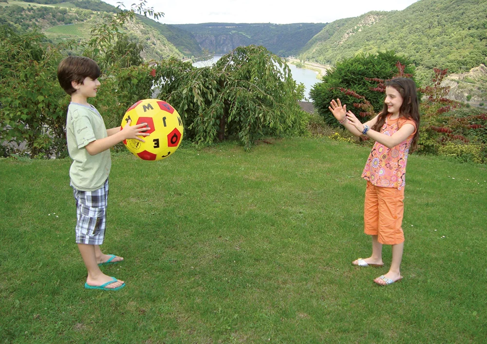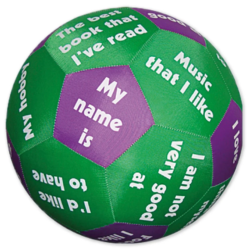 Sådan spilles der: Børnene kaster bolden til hinanden, og opgaven bestemmes af, hvor højre tommelfinger lander. Med engelske samtaleøvelser som tema lærer børnene at stille spørgsmål og svare på dem, samtidig med at de forbedrer deres sprogkundskaber og sociale interaktion.