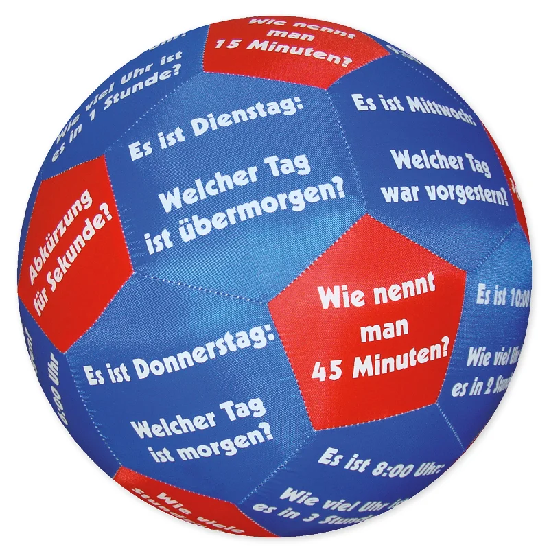 Integrer leg og læring med vores Læringsbold Til Tyskundervisning – Tid og Ugedage. “Spil Bevæg og Lær” Denne bold er et fantastisk redskab til at hjælpe børn på mellemtrinet / udskoling med at lære og forstå tysk om klokken og ugedagene på en interaktiv og sjov måde, samtidig med at de forbedrer deres fysiske og sociale færdigheder.