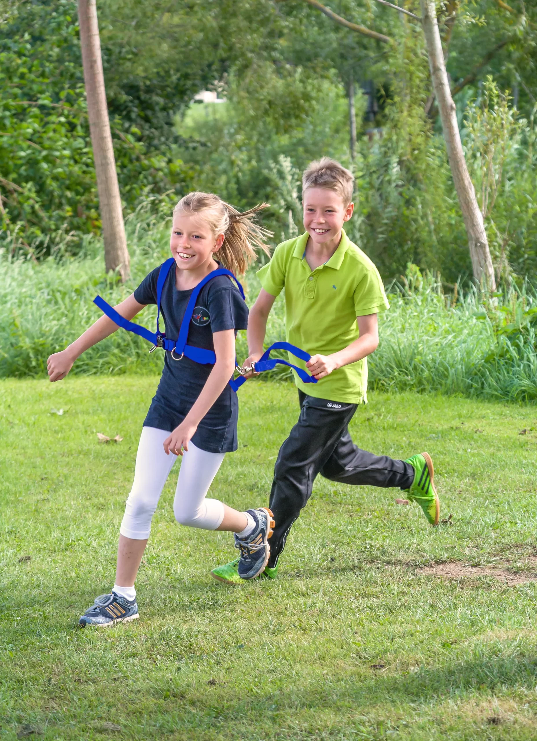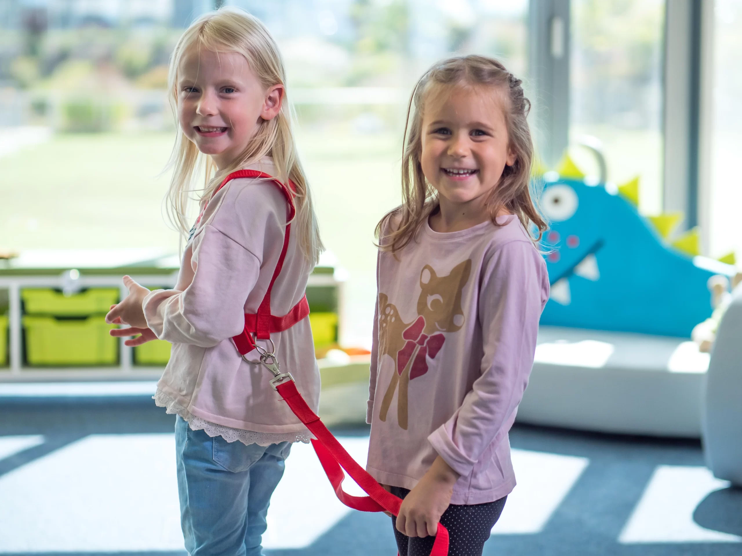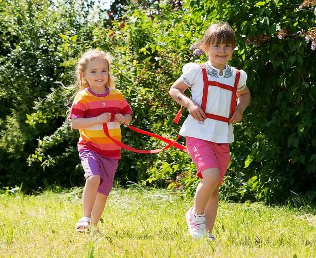 Fremstillet af blødt nylon, er dette sæt både holdbart og justerbart, så det passer til alle børn. De medfølgende karabinhager gør det nemt at forbinde ‘hesten’ med ‘rytteren’, og den hurtige åbningsmekanisme sikrer børnenes frihed, når legen skal skifte retning. Flere tøjler kan kombineres for endnu mere kreativ leg, herunder muligheden for at simulere en hestevogn.