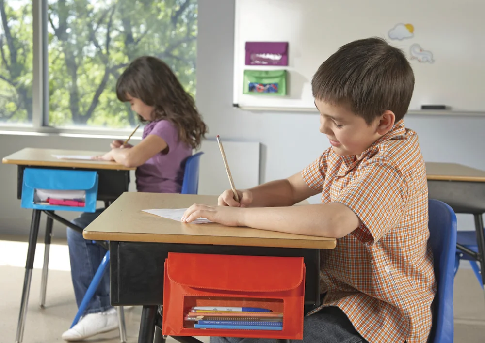 - Fremstillet af slidstærkt nylon og tilgængelig i farverne rød, grøn, blå og lilla, hvilket gør det nemt at organisere og farvekode materialer for forskellige grupper eller klassetrin.