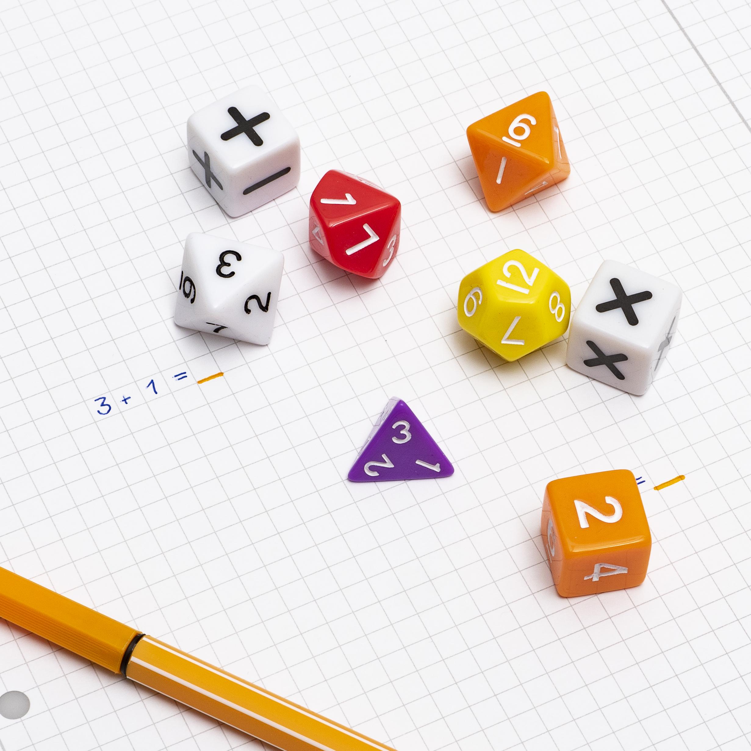 De 9 forskellige terninger i dette sæt gør det til en leg for børn at praktisere matematik. Terningerne er designet til at gøre læring underholdende og engagerende. Hver terning repræsenterer en unik udfordring, der hjælper med at udvikle matematiske færdigheder på en kreativ måde.