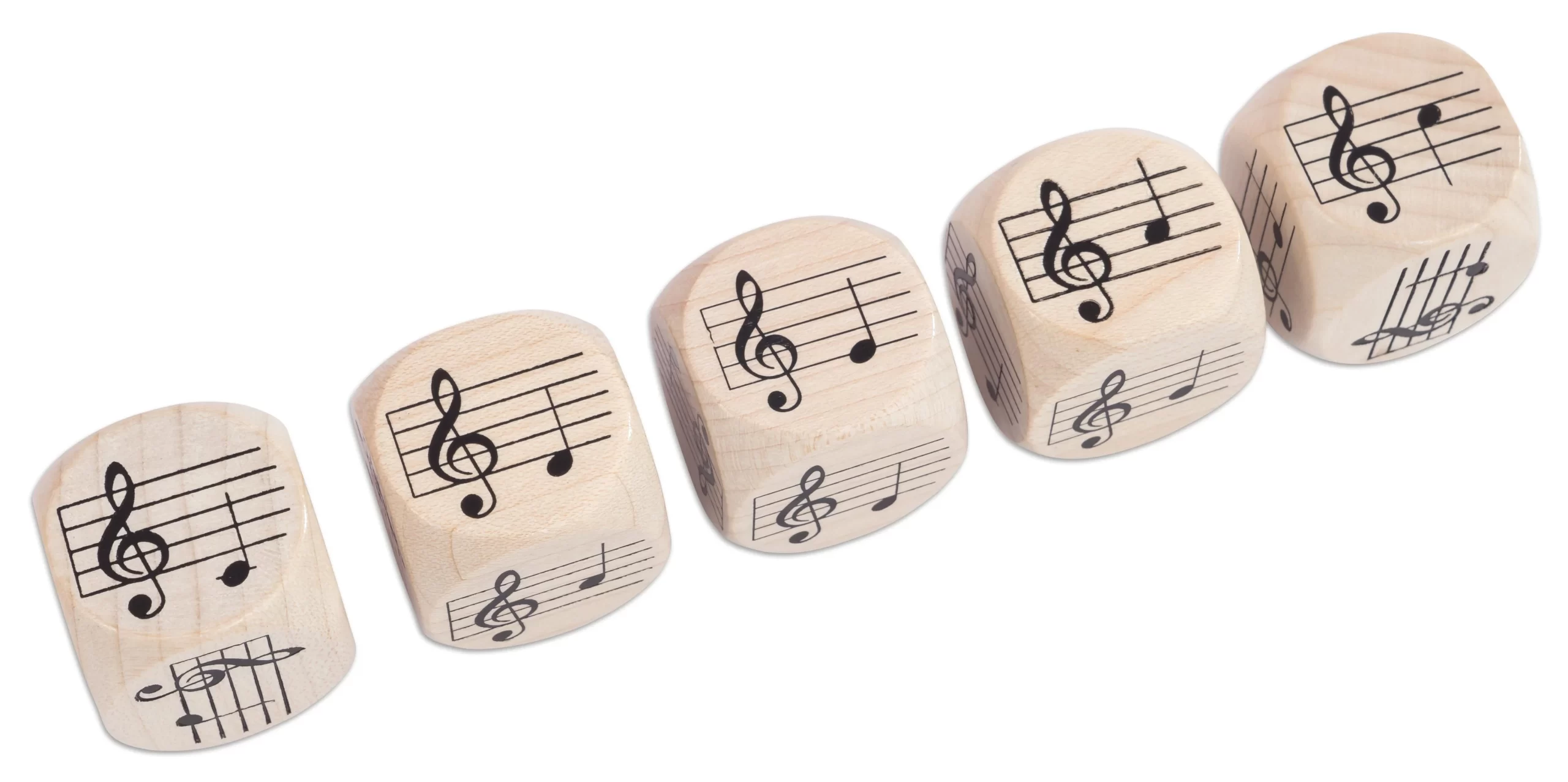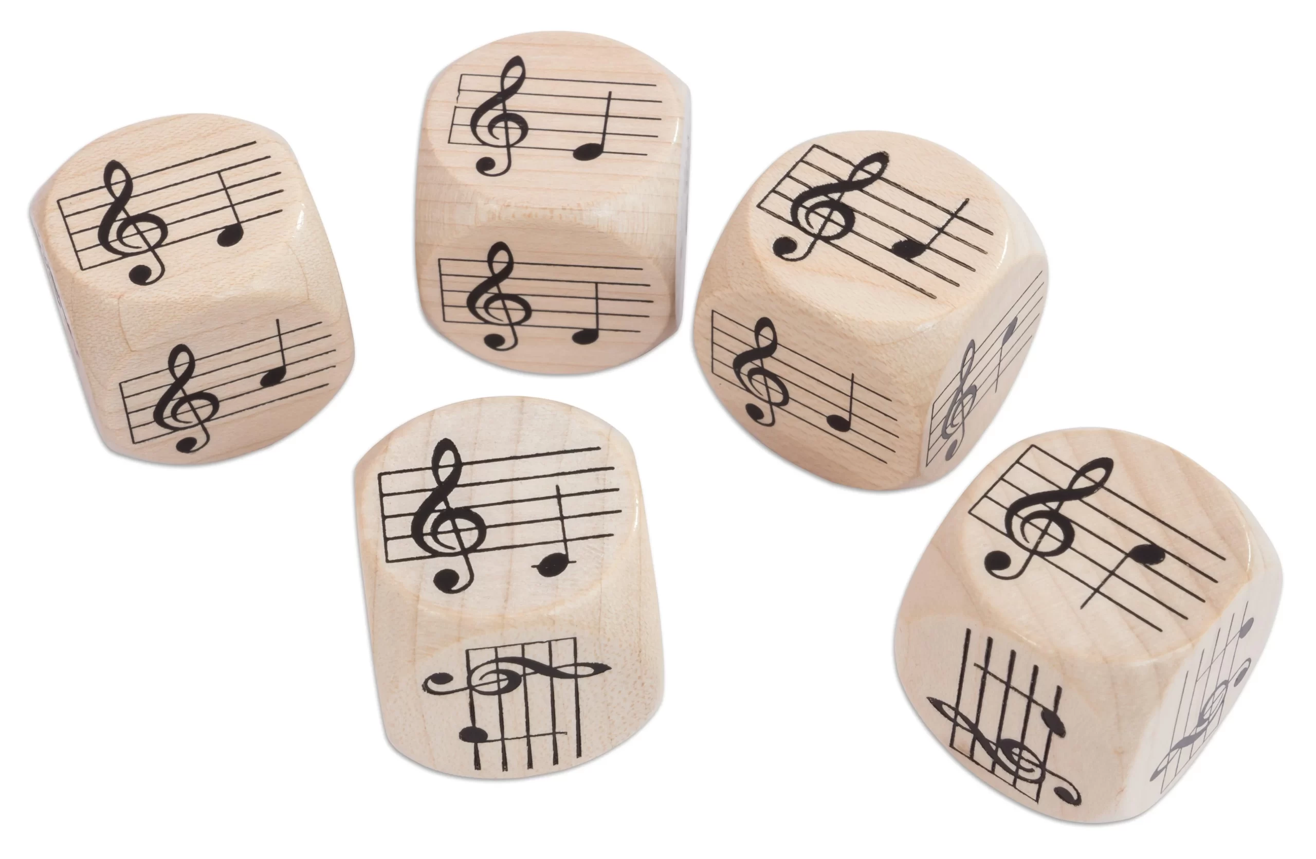 Opdag musikkens magi med Melodi Terninger. Dette sæt består af fem store terninger fremstillet af ahorntræ. Hver terning har indgraveret noder (c, d, e, g, a, c’). Noderen danner en pentatonisk skala.