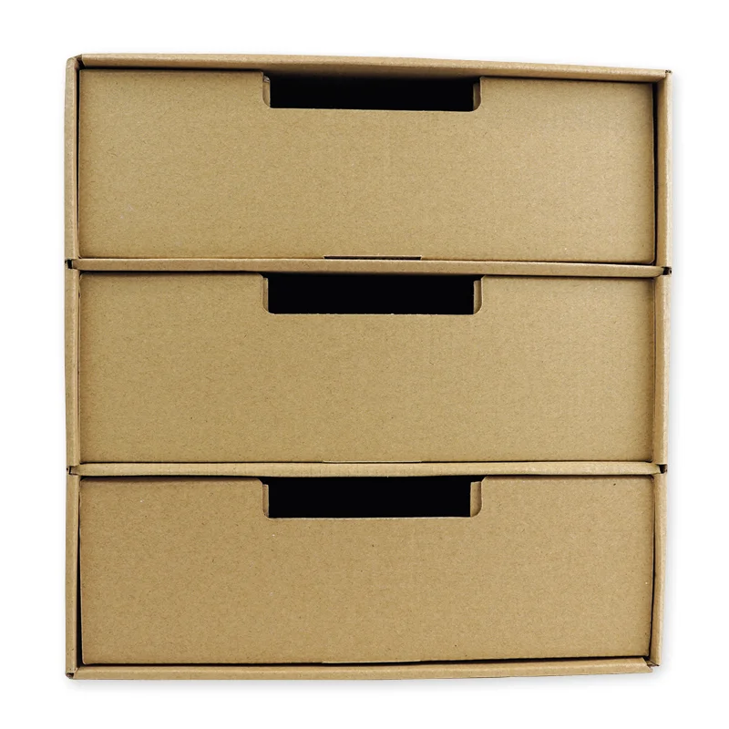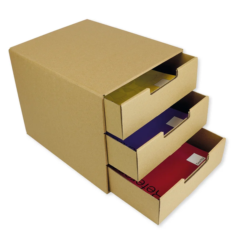 Få styr på papirer og projekter med denne opbevaringskasse med 3 skuffer i kraftig, naturfarvet pap. Den er både praktisk og miljøvenlig – perfekt til skole, kontor og hjem. Skufferne passer til A4-format og har smarte gribeudskæringer samt felt til mærkning, så du hurtigt finder det, du skal bruge.