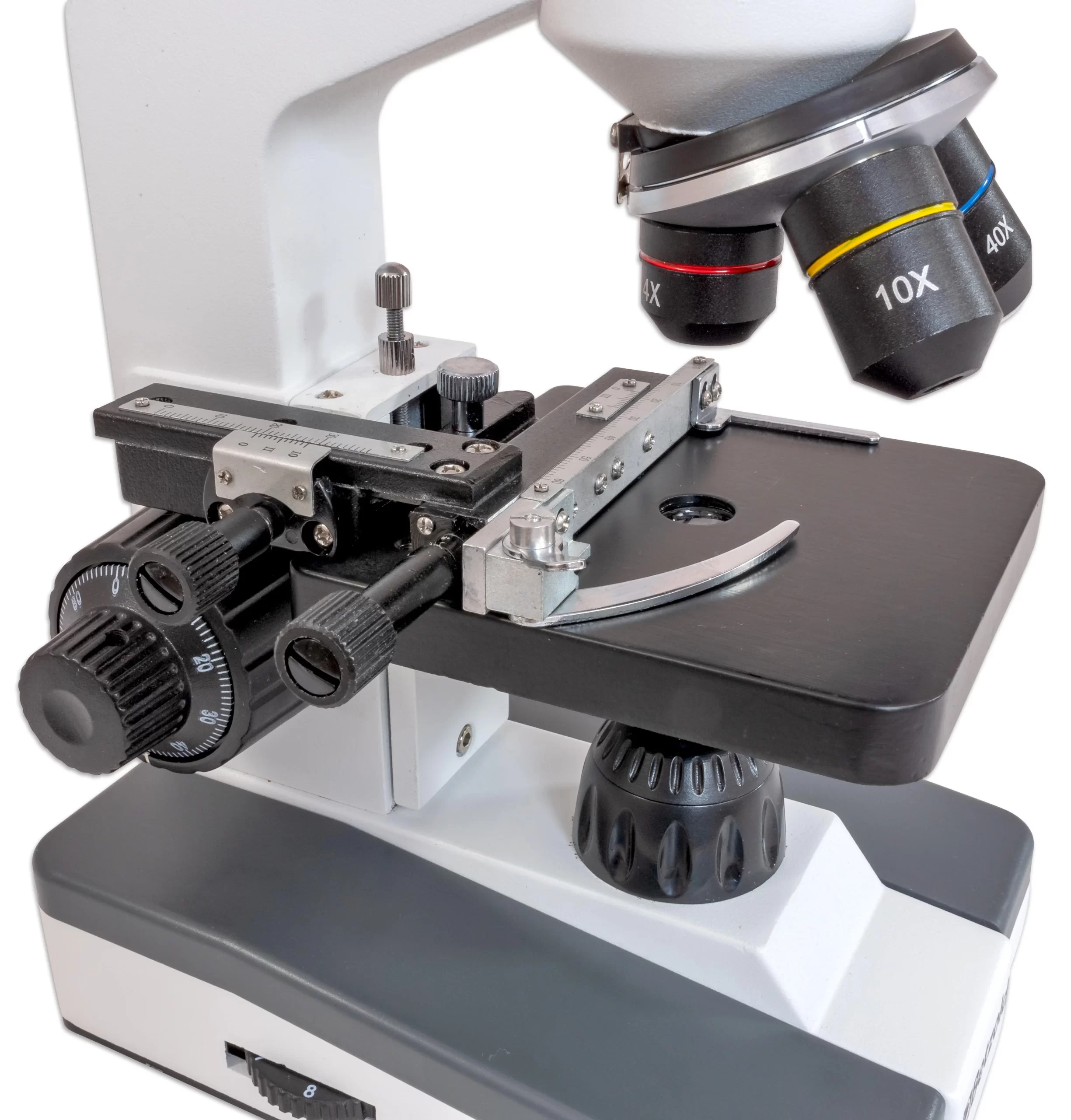 - Forstørrelser: Mulige forstørrelser på 40x, 100x, og 400x.