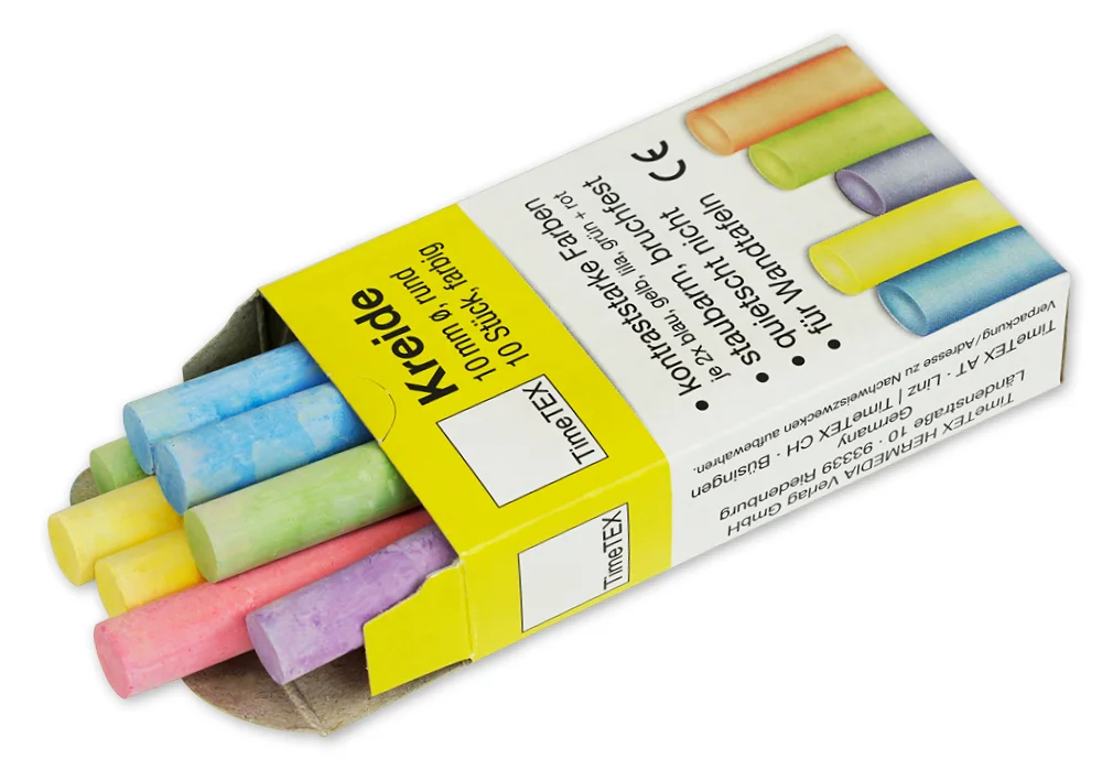 Farverig og holdbar kridt, der giver en problemfri skriveoplevelse. Dette 10-pack indeholder kridt med en diameter på ca. 10 mm, perfekt til at skrive og tegne på tavler. Den er pigmenteret i kraftige, klare farver, hvilket gør den ideel til både undervisningsmiljøer og kreative projekter.