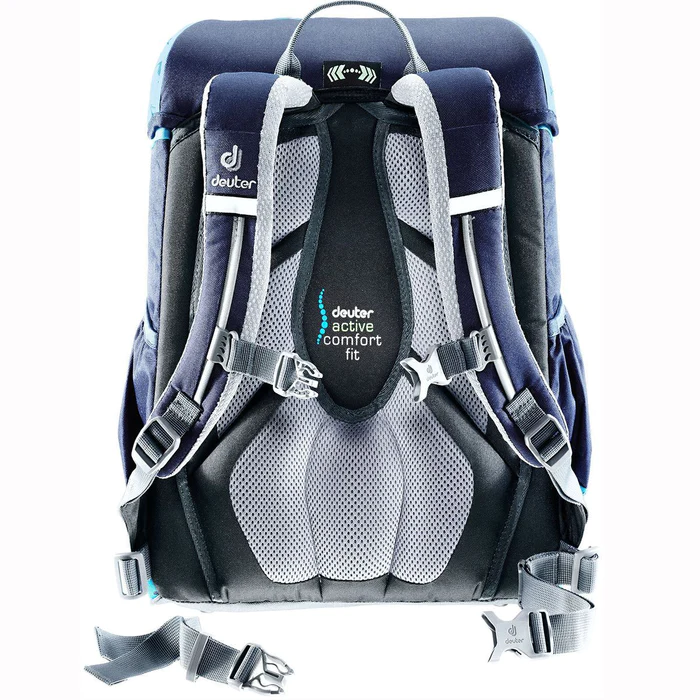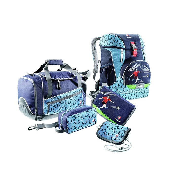 Gør skoledagen ekstra sjov med Deuter OneTwo Hopper skoletaske sættet, perfekt til den fodboldglade dreng. Dette 4-delte sæt kombinerer funktionalitet med stil og inkluderer en skoletaske, sportstaske, penalhus, og pengepung, alle i flotte blå farver og med fodboldmotiver.