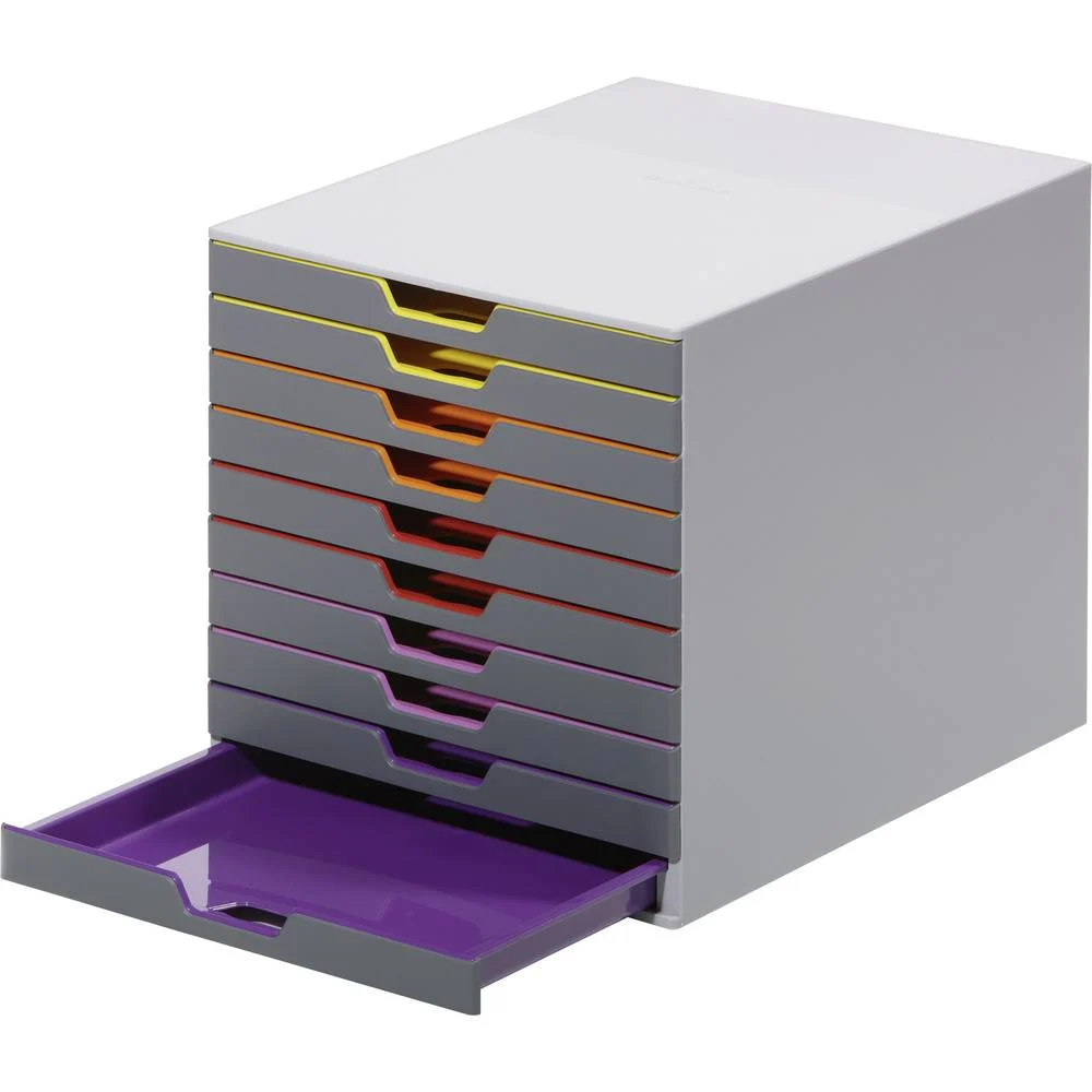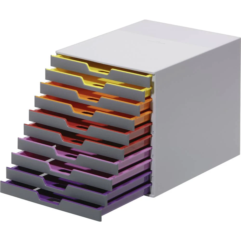 Durable Varicolor Skuffeboks med 10 farvestrålende skuffer er den ideelle løsning til at organisere dit kontor og holde styr på vigtige dokumenter og papirer. Med sin innovative og attraktive design skaber den et stilfuldt og moderne arbejdsmiljø.