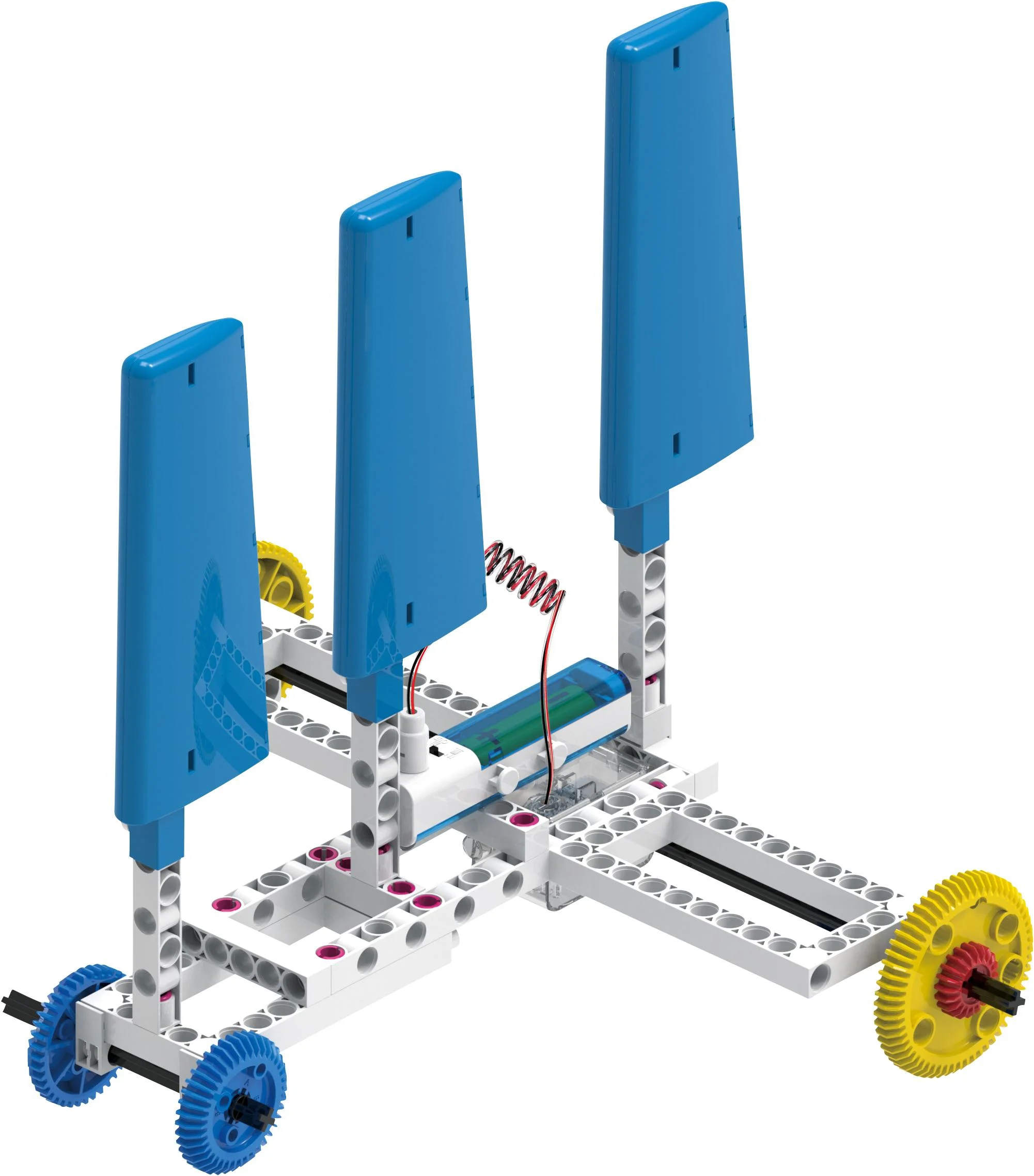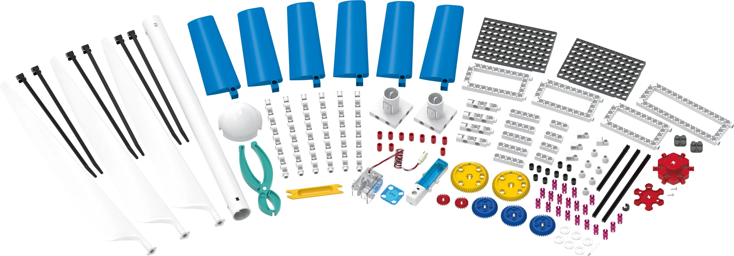 - 2 sæt rotorblade og et gear med 3 forskellige gearforhold for avancerede eksperimenter.